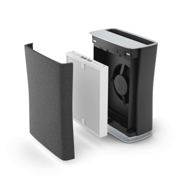 Roger little uses a Dual Filter™ system – a powerful combination of a HEPA H12 filter and an activated carbon filter – to purify the air. The textile prefilter removes coarse dust particles and pollutants from the air, thus protecting the Dual Filter™. The prefilter is protected against microbial growth by its integrated Sanitized®* hygiene function. The antimicrobial protection for the prefilter is guaranteed for at least 20 washes on a delicate wash cycle at 30 °C.